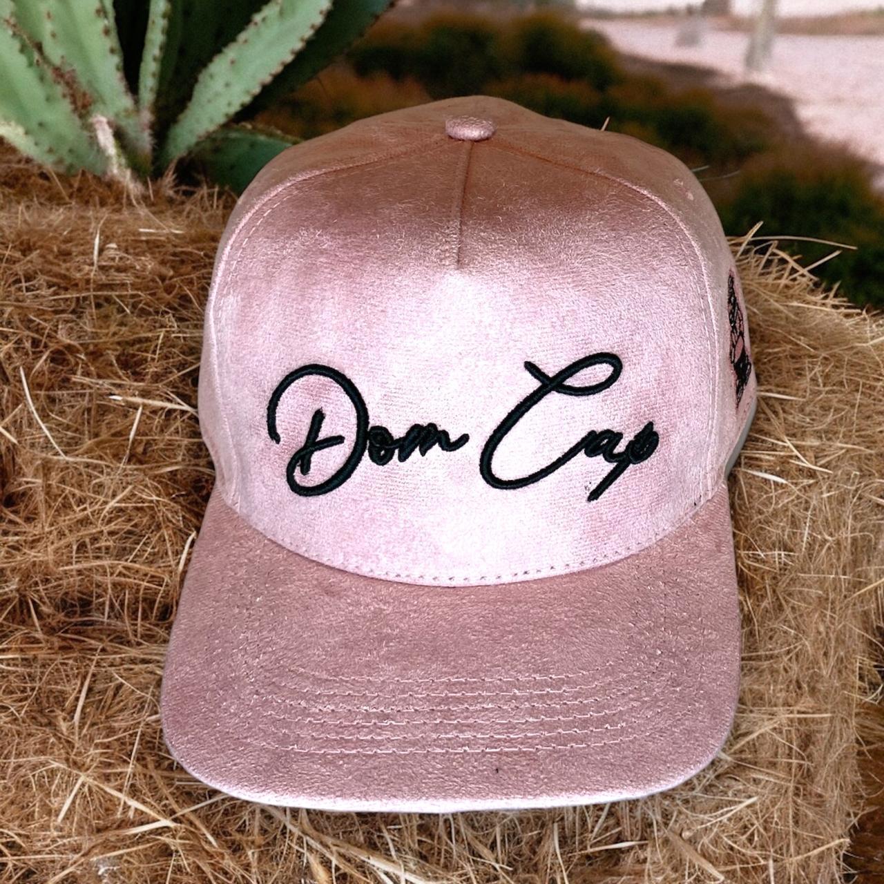 Boné rosa claro, de aba semi reta, em tecido camurça, com bordados lateral e frontal em preto CARACTERÍSTICAS